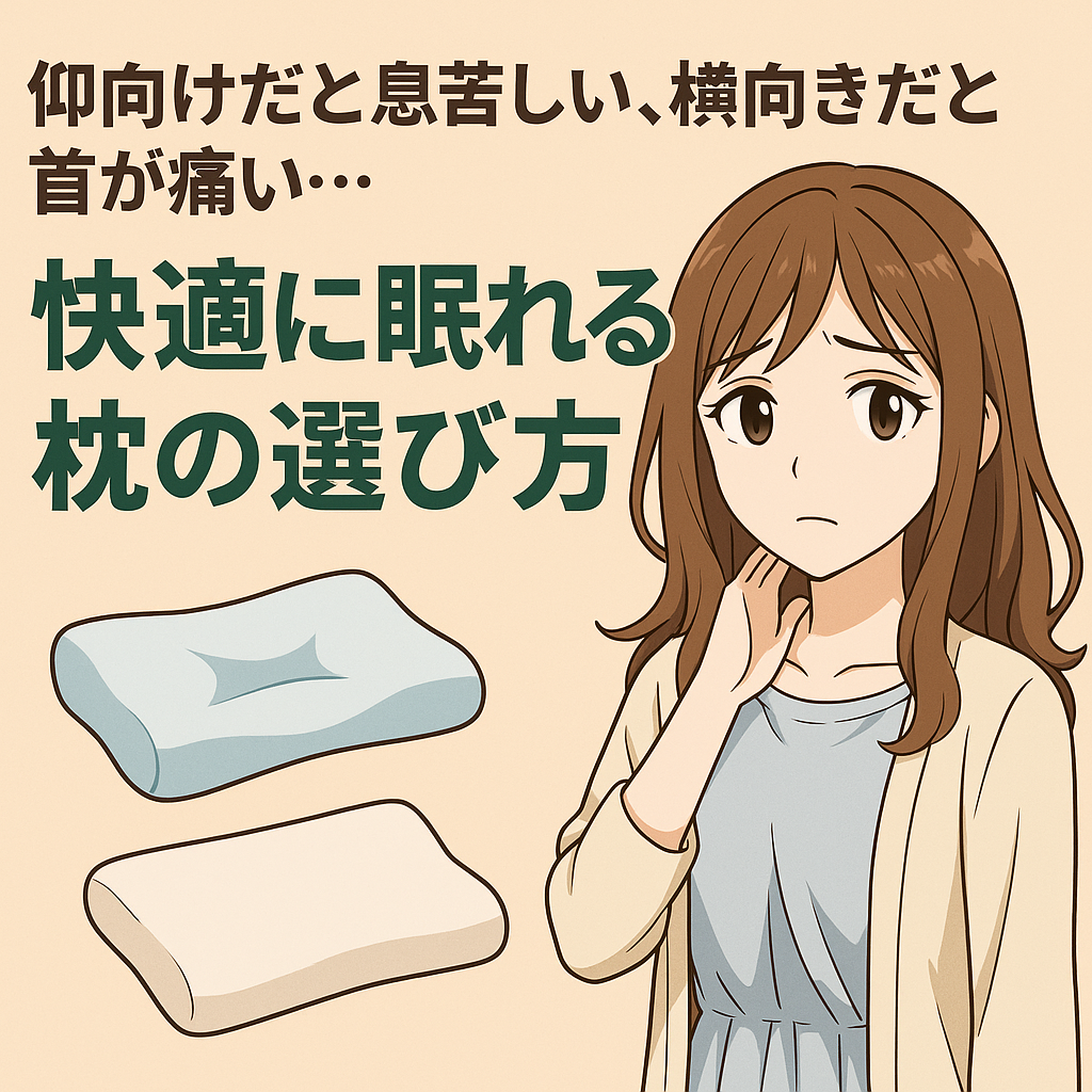 特に「仰向けだと息苦しい」「横向きだと首が痛い」という悩みは、枕の高さや形状が合っていないサイン。